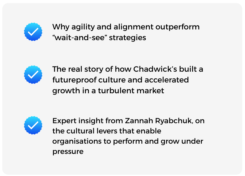 In this webinar, Chadwicks CEO, Patrick Atkinson and Breakthrough CEO, Zannah Ryabchuk, share how aligning leaders around one clear direction helped the business outperform the market during sustained volatility.